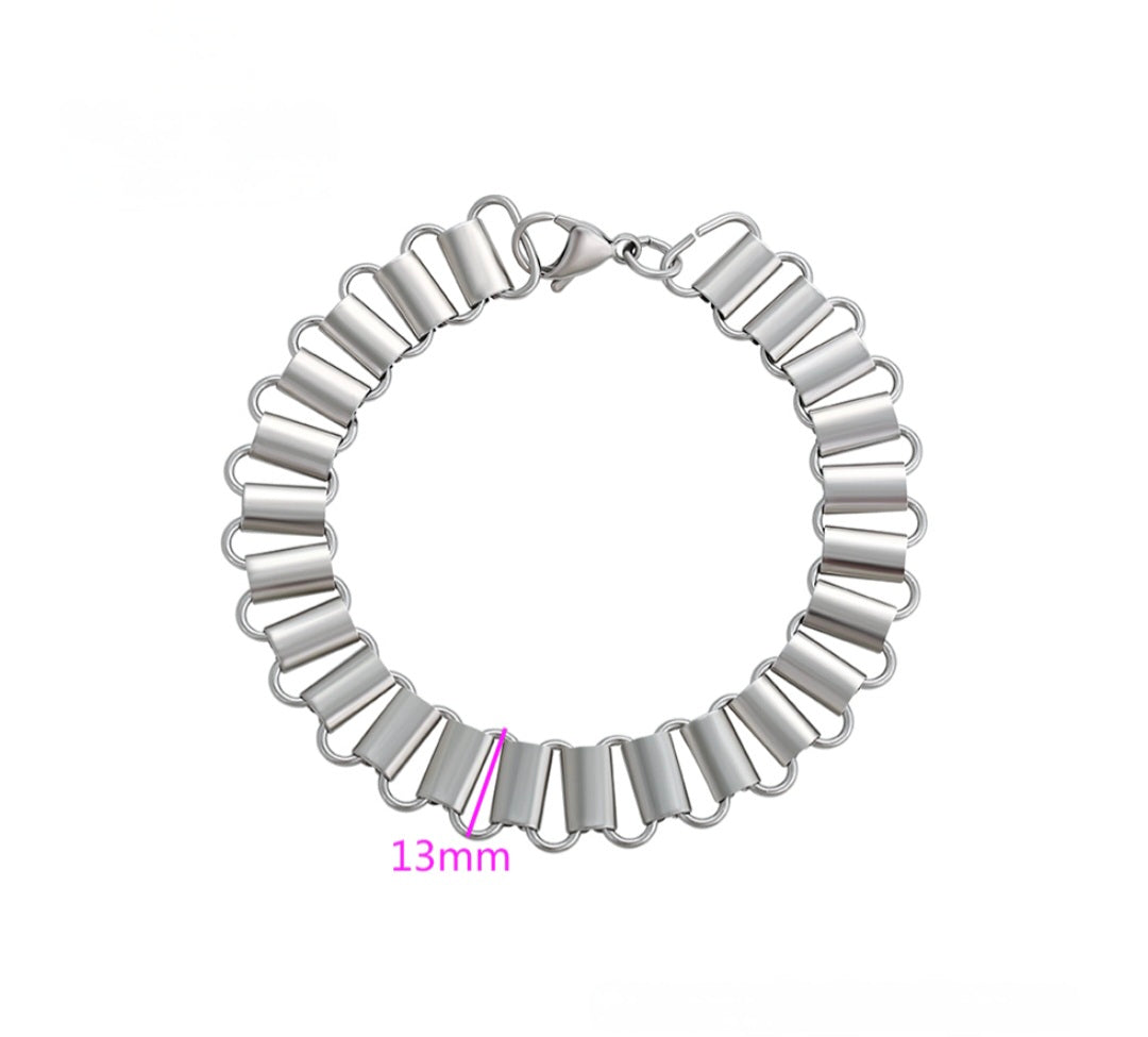 13mm Stainless Steel Ripple Link Bracelet – Silver Chunky Statement Chain for Men & Women