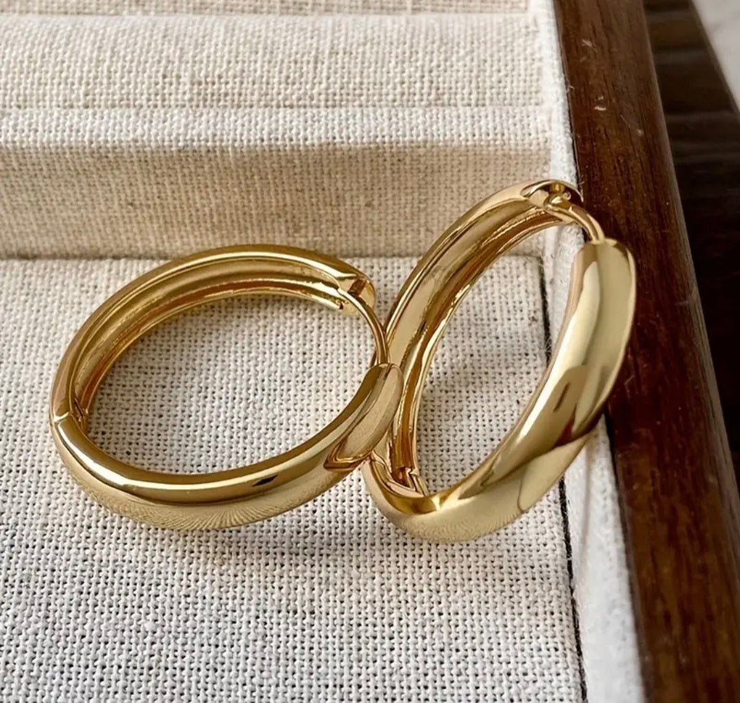 Sleek, sculptural, and effortlessly elegant — these hoops are a timeless statement for any occasion. Their smooth, rounded design and modern silhouette make them the perfect everyday accessory, adding a touch of refined confidence to any look. Lightweight and comfortable, they’re your go-to pair for polished simplicity.