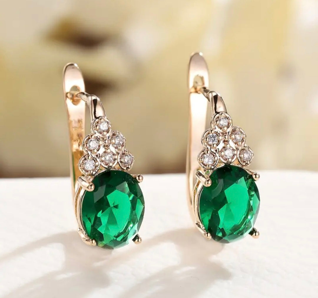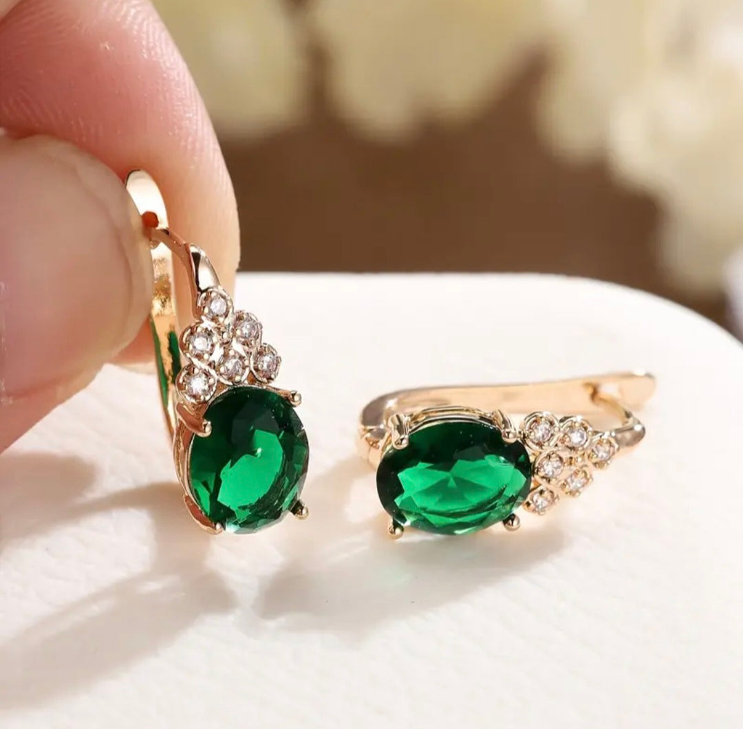 Turn heads with these stunning Emerald Elegance Drop Earrings, featuring a vibrant oval-cut green crystal framed by shimmering pavé accents. Designed with a refined gold-tone finish, these earrings strike the perfect balance between timeless sophistication and modern sparkle. Measuring 2.05 cm (0.80 in) in length, they’re lightweight yet captivating—ideal for both everyday wear and special occasions.