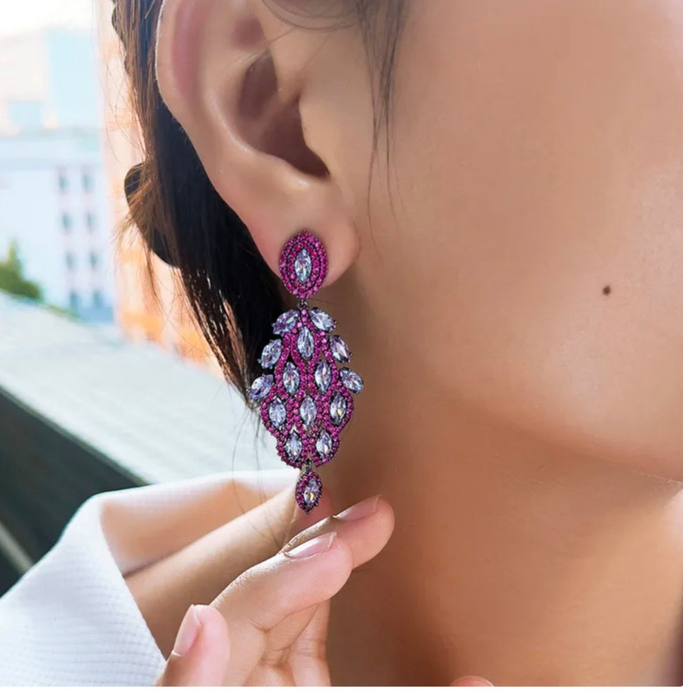 Bold and luminous, the Fuchsia Cascade Earrings feature shimmering marquise stones framed in vibrant pink accents for an eye-catching, elegant finish. Perfect for any standout moment.