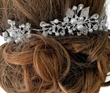 Accented with rhinestone leaves this delicate hair vine with scattered pearls is sure to create that special hairdo you desire!