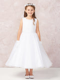 A mixture of sequins and pearls for the bodice, a trimmed pearl waistline, and a multi-layer tulle skirt creates a stunning dress that will make your special girl feel like a princess! Perfect for flower girls, communion, or any special event!
